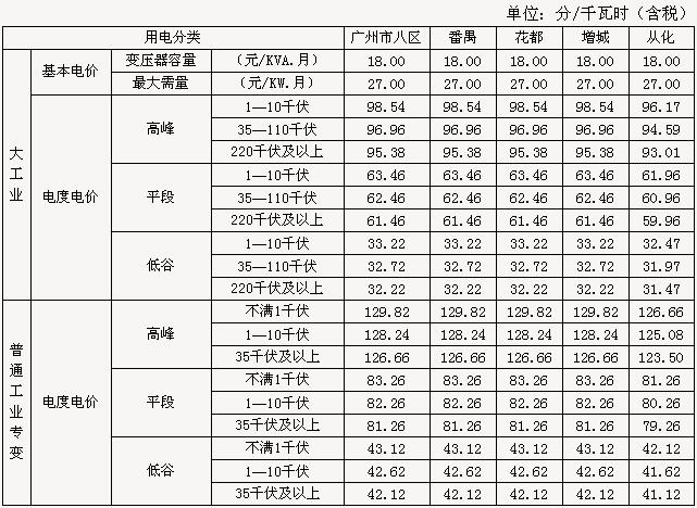 广州市峰谷电价表