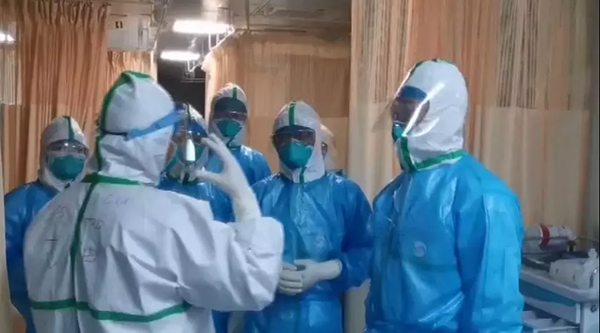 接诊!进驻重症监护室:1月25日,解放军3支医疗队分别奔赴金银潭医院、汉口医院、武昌医院等3家收治任务最重的定点医院开展救治工作。1月26日,解放军医疗队进驻重症监护室,对危重患者进行规范救护。(图片来源:空军军医大学微信公众号)