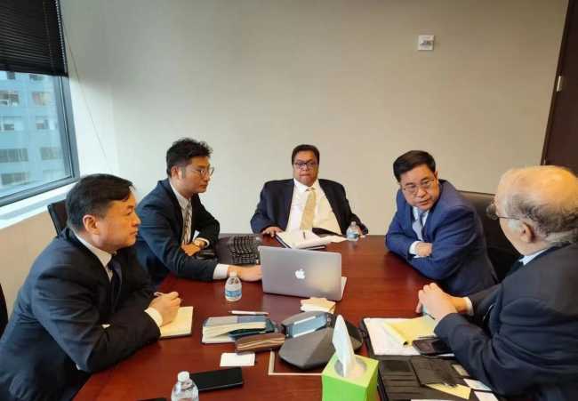 两家投行分别就全钒液流储能项目的市场前景,技术发展,资金需求,融资方式等与长明集团进行了深入细致的探讨交流。两家投行均表示长明工业控股集团的全钒液流储能项目让他们眼前一亮,尤其是公司运营团队具有国际前瞻性的经营方式让他们大感兴趣,两家投行均表示将积极促成长明工业控股集团的Pre-IPO融资,并为长明集团IPO提供全程服务。美国三角会计集团总裁Steve Niu、GEM集团总裁Theodore Bulow也参与了会见并进行了深入交流。