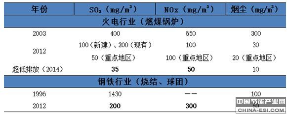 火电、钢铁行业大气污染物排放标准对比