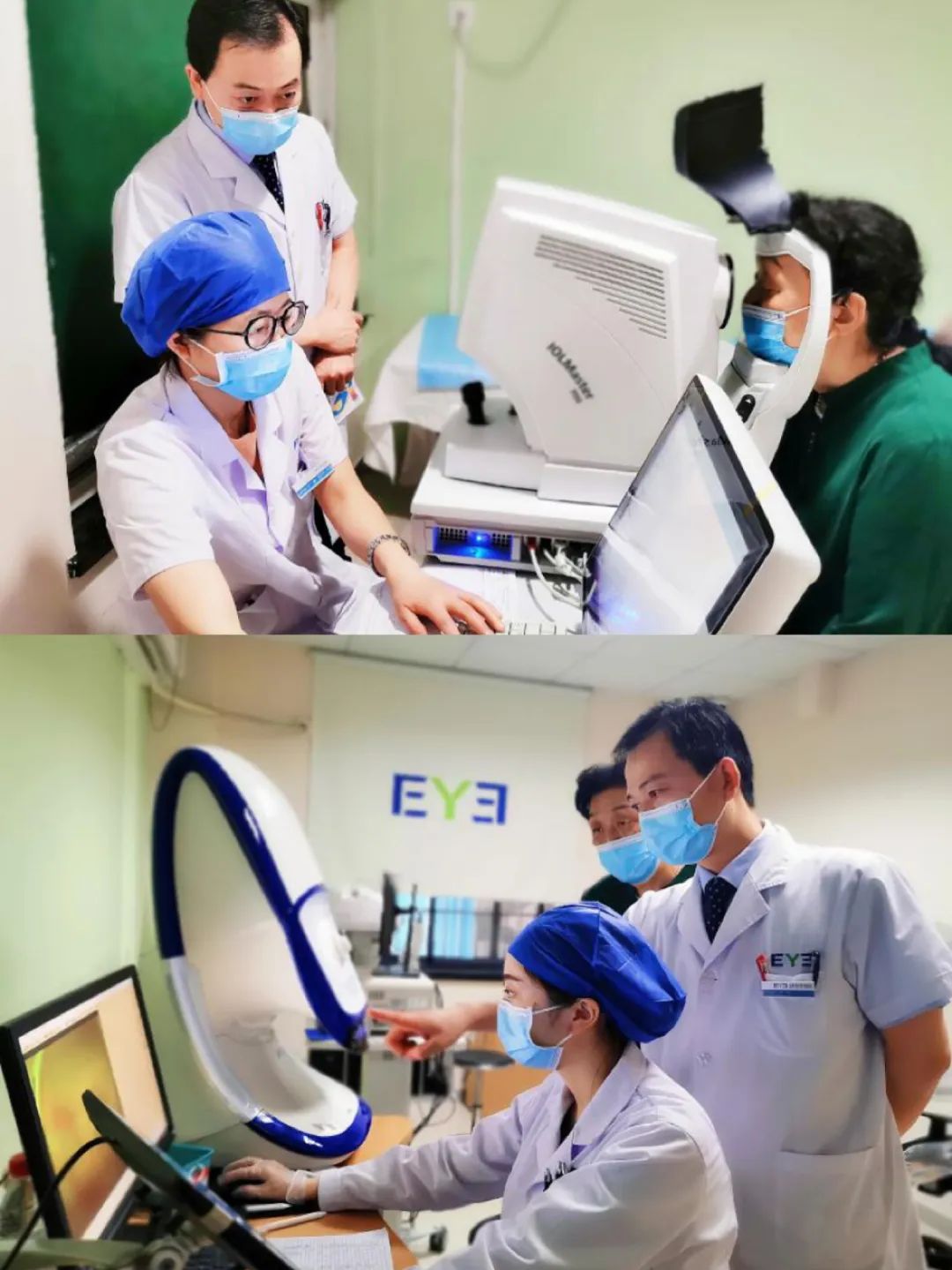 ▲术后第一天,刘勇院长为周阿姨做术眼检查