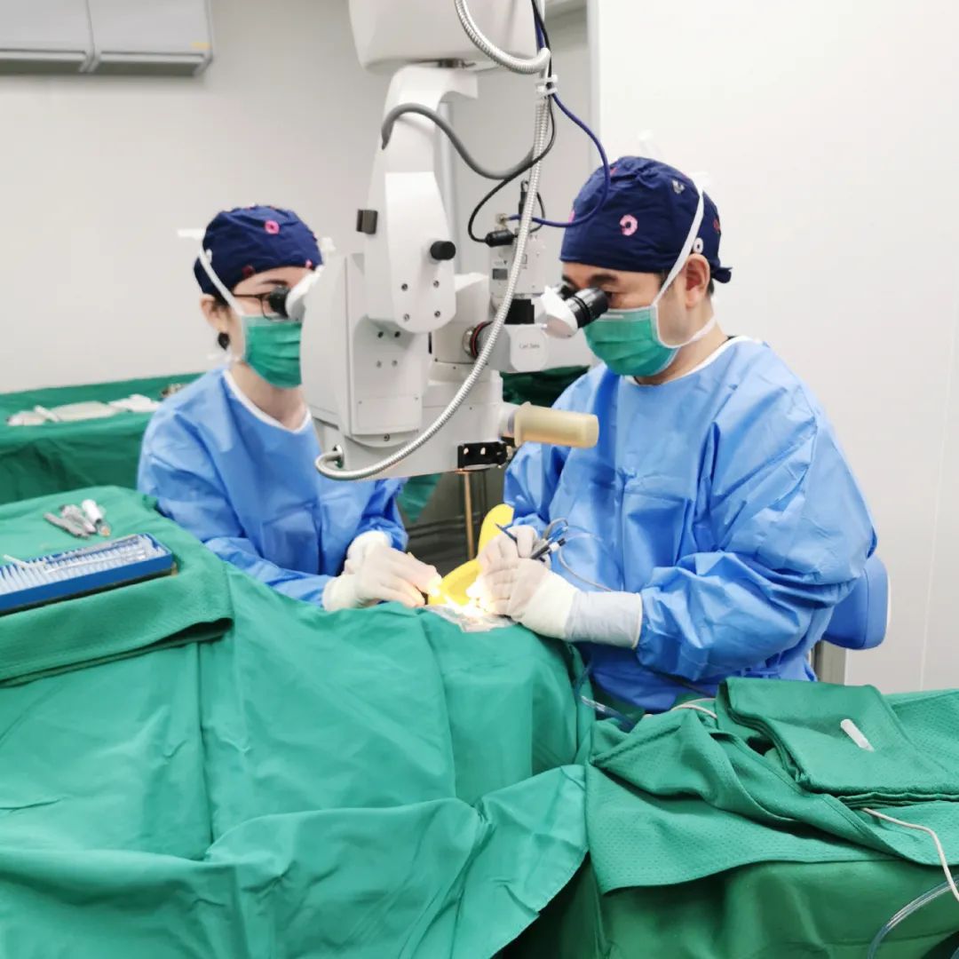 ▲刘院长为周阿姨实施“安徽首批爱尔康PanOptix三焦点人工晶体植入术”