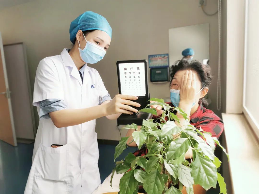▲术后第一天,周阿姨在检测术后视力情况