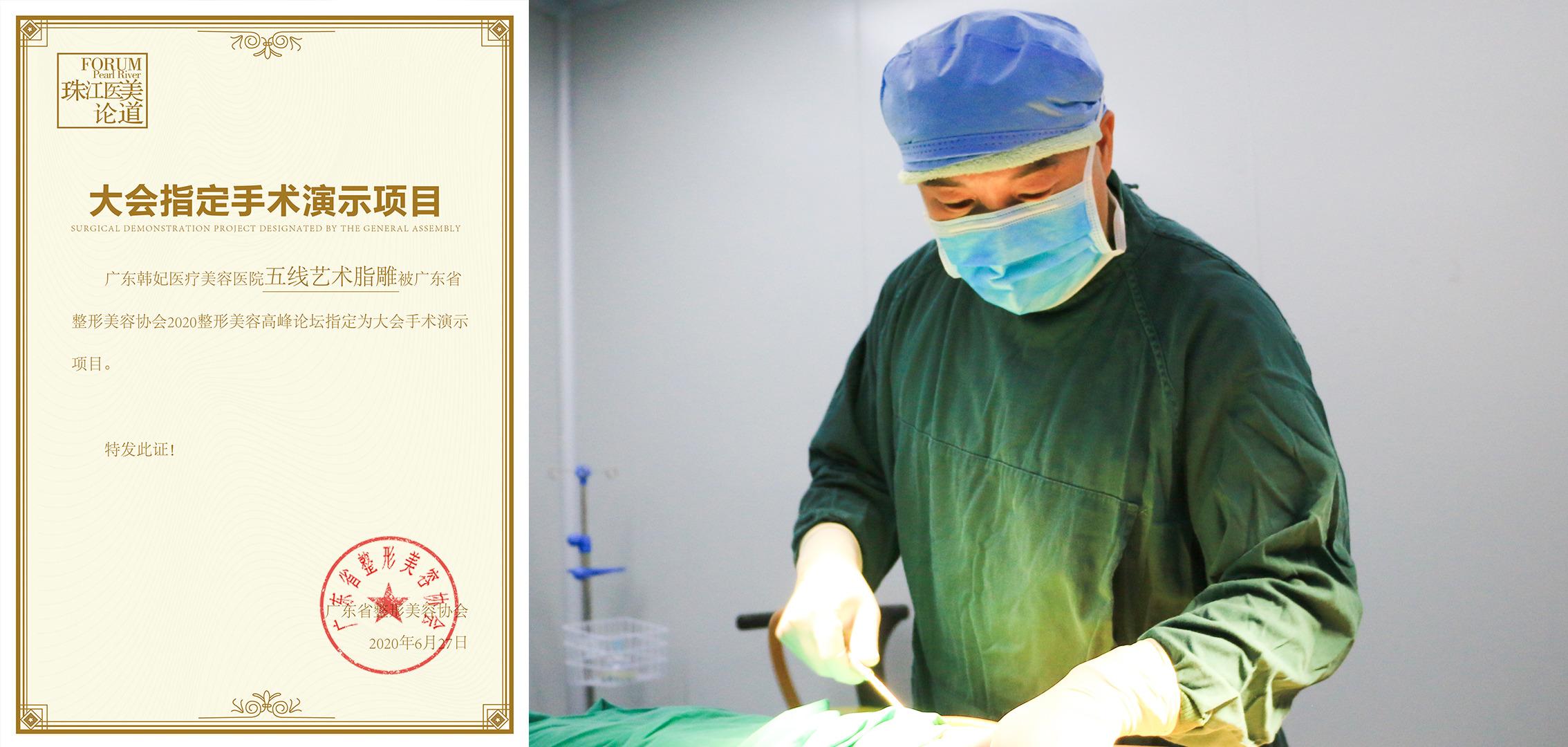 2020年6月27日,作为“2020整形高峰论坛”大会手术演示项目,广东韩妃五线艺术脂雕手术直播顺利举行,近百位公立医院整形医咖观摩了整个手术过程,同时多家主流媒体进行现场采访和报道。广东韩妃整形外科主任杨德发亲自操刀,现场演示了五线艺术脂雕技术要点及技巧,他的每个手术步骤引发了会场专家的一系列讨论。