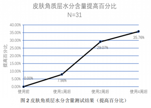 测试一:皮肤锁水及保湿能力提升—28天肌肤水分提升35.7%