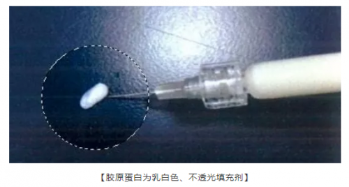 1)胶原蛋白为乳白色,填充皮肤较薄的泪沟时,不会出现“丁达尔现象”;
