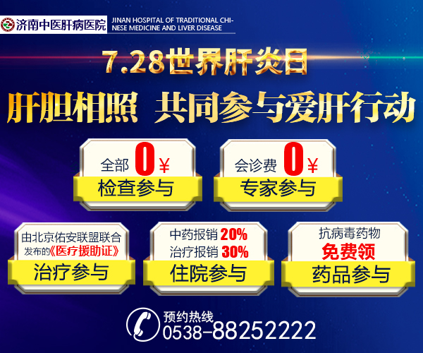 温馨提示:此次活动已经进入倒计时阶段,本次救助优惠仅限活动期间预约就诊的患者,有需要的患者请及时预约,趁活动结束之前参与活动,享受各项诊疗优惠,积极对抗肝病,咨询预约热线:!济南中医肝病医院全体医务人员竭诚为您服务!