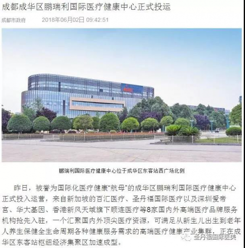 国际化医疗健康“航母”落户成都