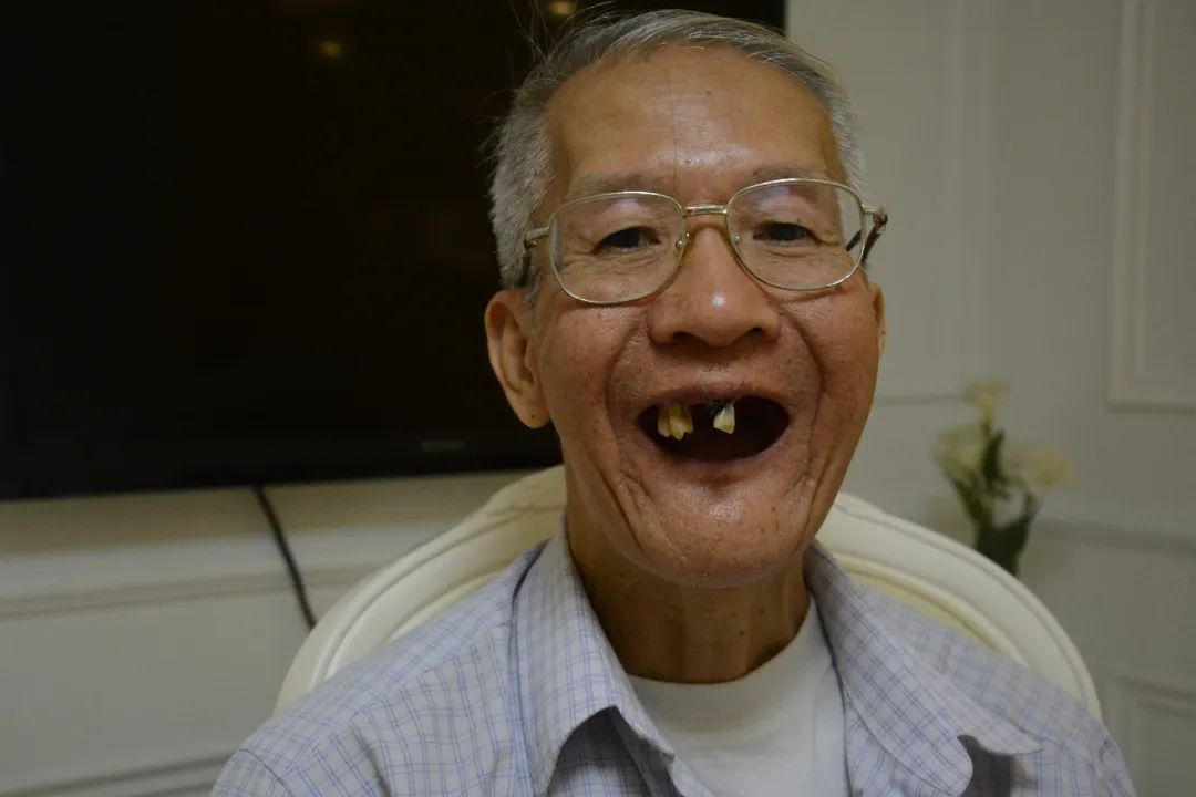 导致陈大爷缺牙的罪魁祸首是牙周病。“牙周病导致牙齿松动,到最后只剩下几颗残根,吃不动东西,无奈之下配了假牙,谁知道带了假牙后摩擦牙肉,吃东西还会移动,牙床发炎疼痛,让牙周病变得更严重了……”提起种牙前的缺牙经历,陈大爷一阵唏嘘。