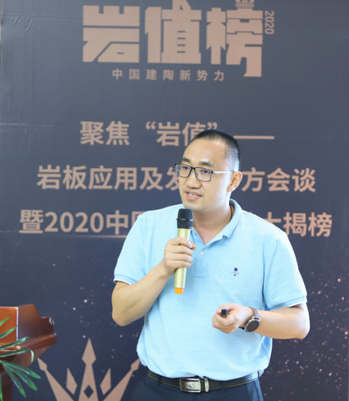 活动伊始,《陶瓷世界》报社长冷先桥率先发表致辞,他讲到:“疫情过后,大家不约而同地把目光转向这一款全新的、炙手可热的革命性家装材料——岩板。2020年1-5月,岩板关注指数同比增长292.5%!岩板已经成为家装材料发展新风向新趋势!”他表示,希望通过此次活动,大家可以根据各自关注的领域,结合各自的经验和思考,就岩板主题展开深入讨论,各抒己见,一同深入解读岩板家居业界营销新思路新战略,共同探索岩板发展应用新风向新趋势!