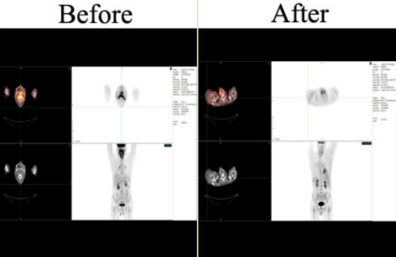 经过中美远程会诊,Dr Javadi为彭先生指定了详细的治疗方案。由于国内检查手段及药物等限制,经过多方评估,彭先生选择赴美转诊,来到Dr Javadi创办的加州希望健康中心。Dr Javadi依据他的肿瘤基因特点,调整了联合化疗和靶向治疗的方案。经过治疗,彭先生复查时惊喜地发现:95%的咽部肿瘤消失了,体重明显增加,出血和疼痛缓解了,生活质量也大大提高。