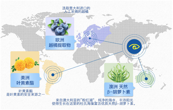 健视佳越橘叶黄素中还添加了天然β-胡萝卜素,β-胡萝卜素在人体内可以转化为维生素A,其原料甄选自澳大利亚杜氏海藻。