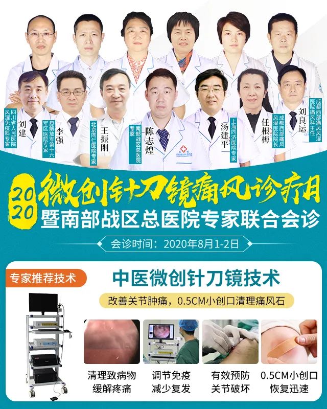 面对众多痛风病友均存在痛风石有效清除的问题,成都西部痛风风湿医院此次特别邀请到针刀镜的发明专家—陈志煌教授,来院内进行联合会诊。