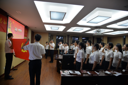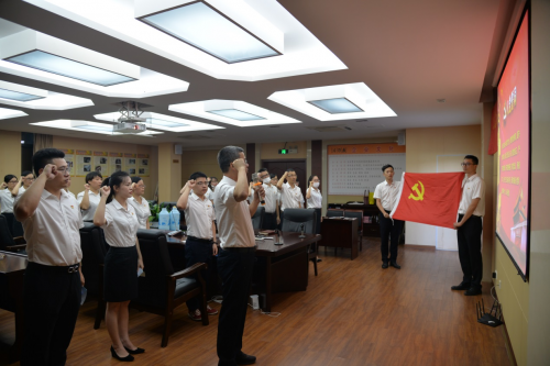 首先,党支部全体党员举行了重温入党誓词的仪式。面对鲜红的党旗,王晓勇书记作为领誓人,带领支部新老党员一起高举右手,再次庄严宣誓。“我志愿加入中国共产党……随时准备为党和人民牺牲一切,永不叛党。”党员们铿锵有力的宣誓,坚定了为共产主义事业奋斗终身的信心和决心。