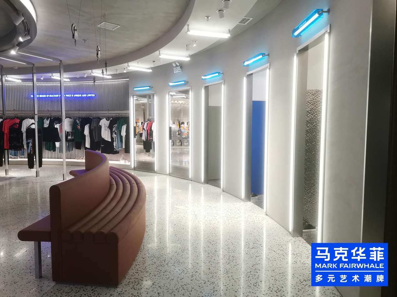 试衣间外部区域的流线设计营造自由意境。