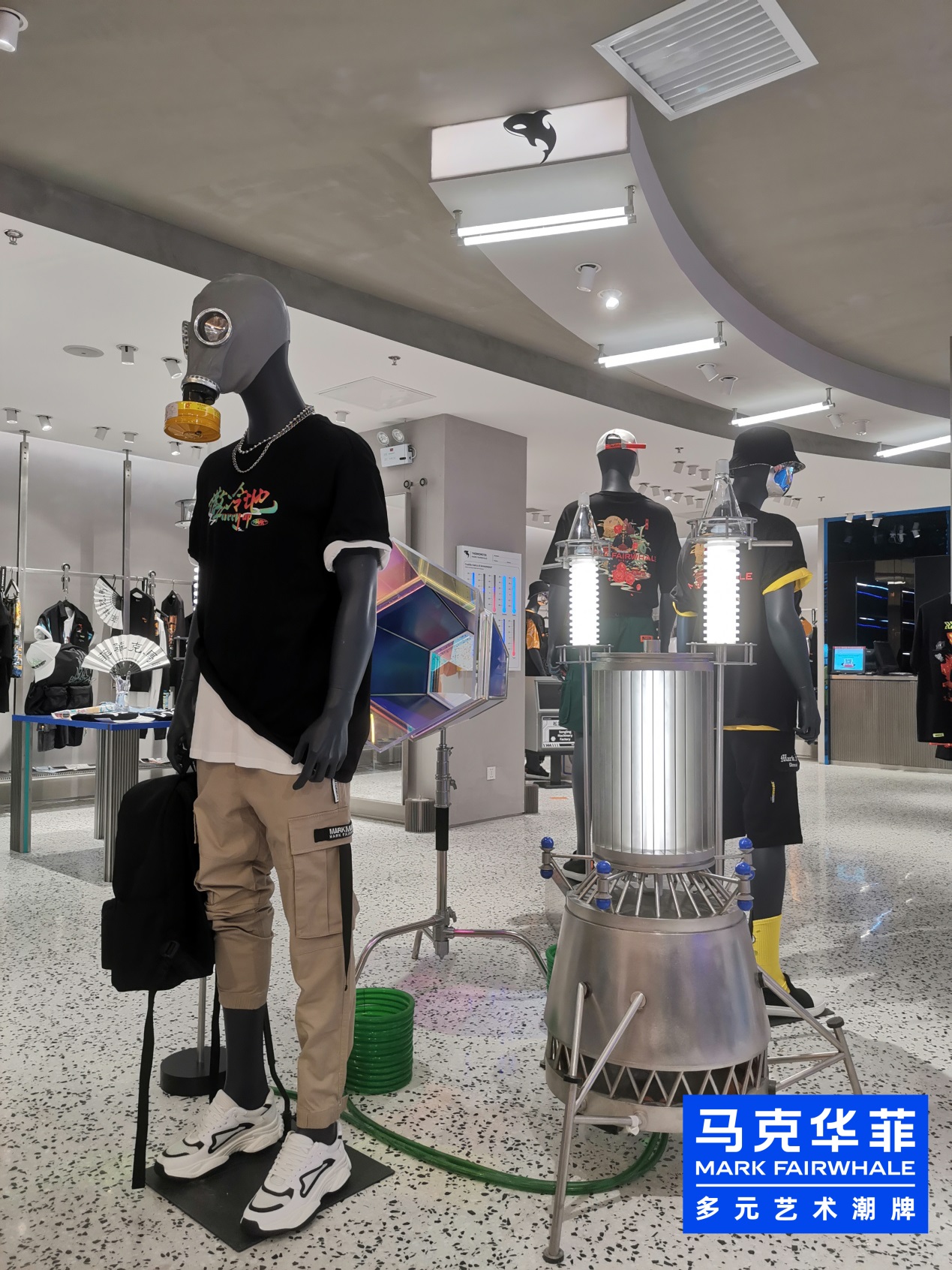 店内随处可见的身戴氧气面罩的模特。潜水氧气瓶、声呐探测器等装置寓意“新生命的冒险与探索”,意图通过些奇特装置形象鼓舞大众爱护海洋,保护地球。