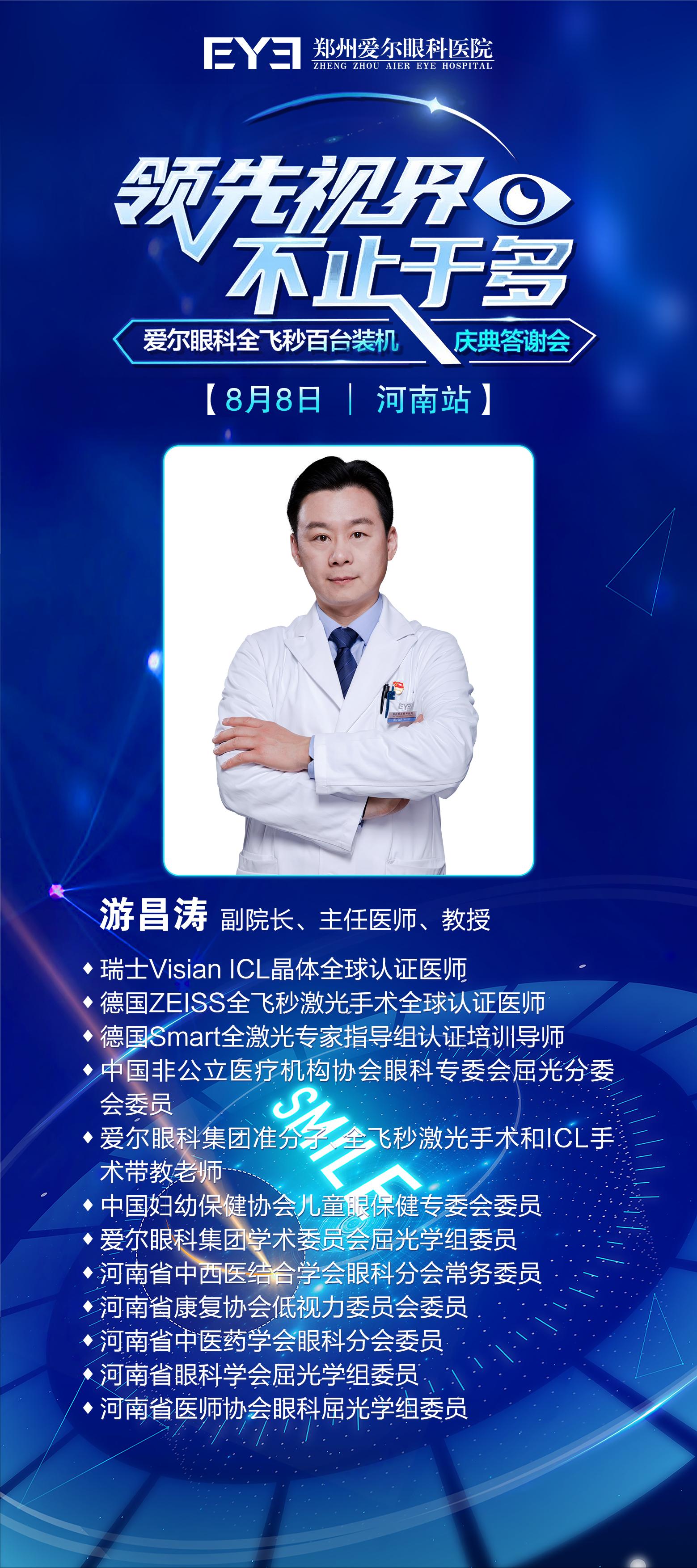 本次答谢会德国蔡司全飞秒激光手术全球认证医师游昌涛将为大家现场分享近视手术的奥秘。