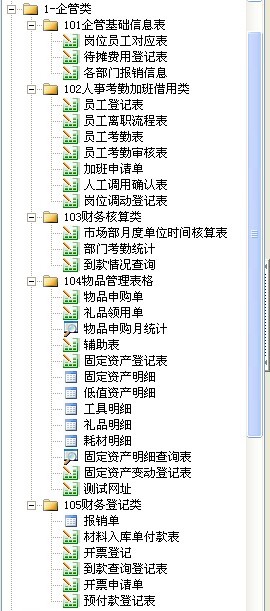 企管类:包含员工考勤管理、加班管理、固定资产管理、礼品管理等。