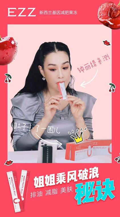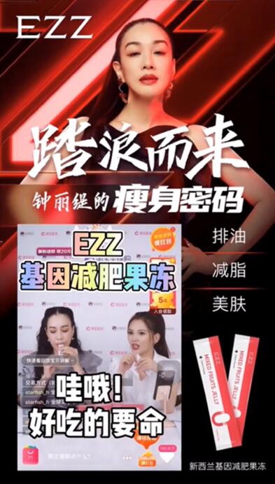 在全国观众愈演愈烈的呼声之下,近日,钟丽缇大方现身网络直播间与粉丝们及时互动,谈到自己的身材管理心得,她表示自己最近正在吃一款来自新西兰基因健康大牌EZZ的减肥单品——EZZ基因减肥果冻。“这款果冻不仅可以让我瘦,还可以排毒和补充胶原蛋白,而且它的味道真的特别好,十分推荐大家也试一下。”钟丽缇在直播间中完全没有偶像包袱,打开一包EZZ基因减肥果冻后立刻吃了一大口,像最亲近的闺蜜一样迫不及待的向粉丝们分享自己的感受, “哇哦!好吃得要命!”