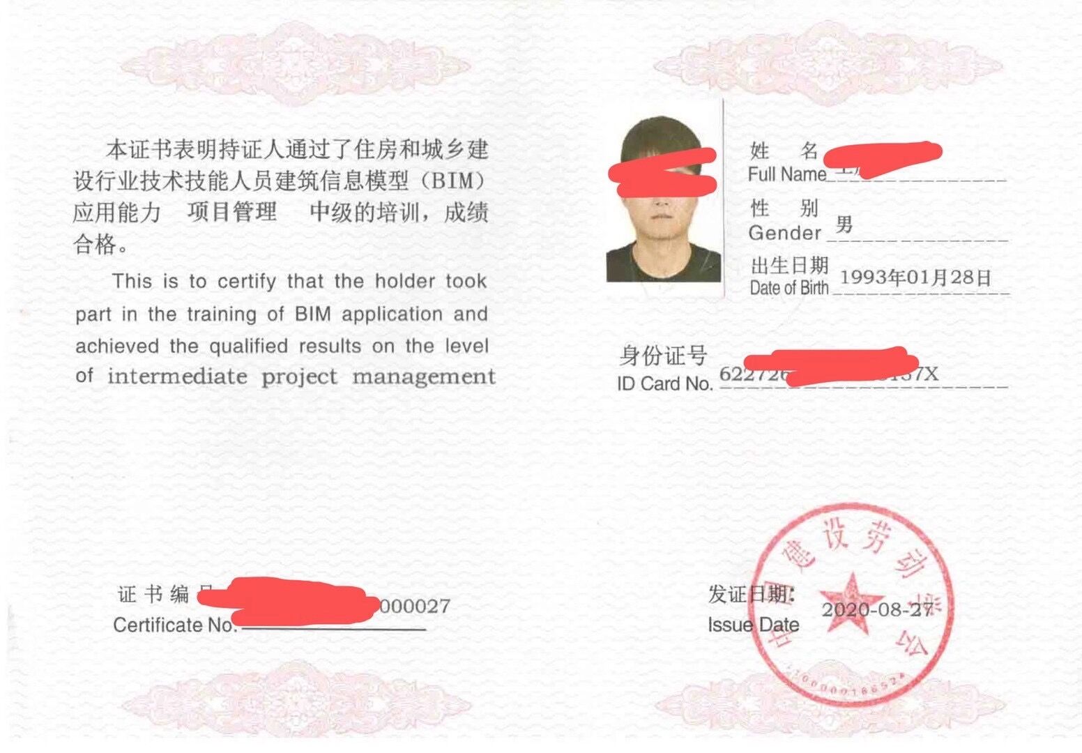 发证机关为:住房和城乡建设部中国建设劳动学会
