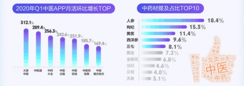 另外,据《讯飞iScope大数据平台》调查显示:在疫情爆发期间,中医药防治受到大力支持,人参、枸杞、黄芪等中药材以及艾灸等中医疗法,成为国民养生的一大法宝。