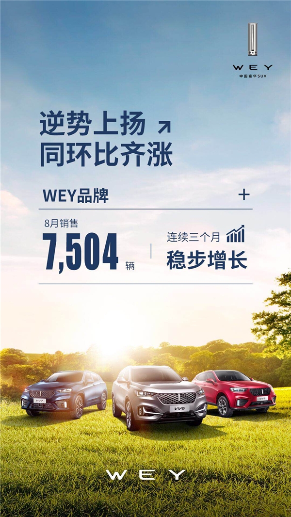 技术平台过度投入、过度研发、过度配置,助攻WEY成为首个实现36万+销量的中国豪华品牌,就近期销量来看,WEY品牌8月销售7,504辆,1-8月累计销售41,234辆,其中智能安全旗舰VV6销售4,453辆,同比上涨3.3%,环比大涨21.9%;VV7销量同比劲增37.2%,环比增加3.5%,“爆发生长”的速度不可小觑。