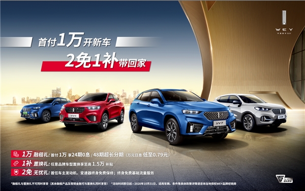 与此同时,WEY品牌仍不忘以用户为中心,正值换车季,为减轻用户的购车压力,自即日起,WEY品牌还推出了超值礼遇,车主选择WEY品牌旗下VV5、VV6、VV7系列车型,可享受1万元首付、24期0息的“1万融租礼”、至高1.5万元任意品牌车型置换补贴的“1补置换礼”,以及首任车主发动机、变速器终身免费保修、终身免费基础流量服务的“2免无忧礼”,大大降低了车主购车门槛和购车压力。