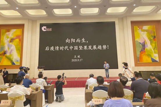 大会开幕式现场,洽洽食品首席增长官王斌受邀作重要演讲—《向阳而生,后疫情时代中国坚果发展趋势》,对后疫情时代下中国坚果发展趋势作了深度分析,并现场接受来自人民网、安徽公共频道、合肥电视台记者采访。王斌指出疫情并未对行业造成影响,只是催速推动了行业发展,未来十年将是中国坚果的黄金十年!中国消费者对坚果的新鲜认知很看重,而洽洽坚果定位新鲜,更是企业“三位一体”的战略,解决坚果不新鲜的问题,让消费者吃上真正新鲜安全的坚果类产品。