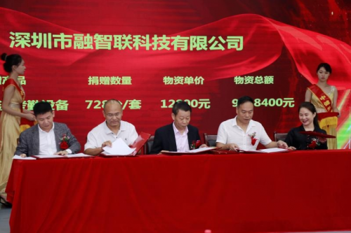 深圳市融智联科技有限公司、深圳市海和科技股份有限公司、瑞丽市谊灵草农业发展有限公司、广东泓钊教育科技有限公司四家爱心企业分别向智慧校园基金捐赠了一批价值900多万元的智能考勤设备、教育安全教学平台、教育心理测评系统、健康杀菌设备,智慧校园物质。