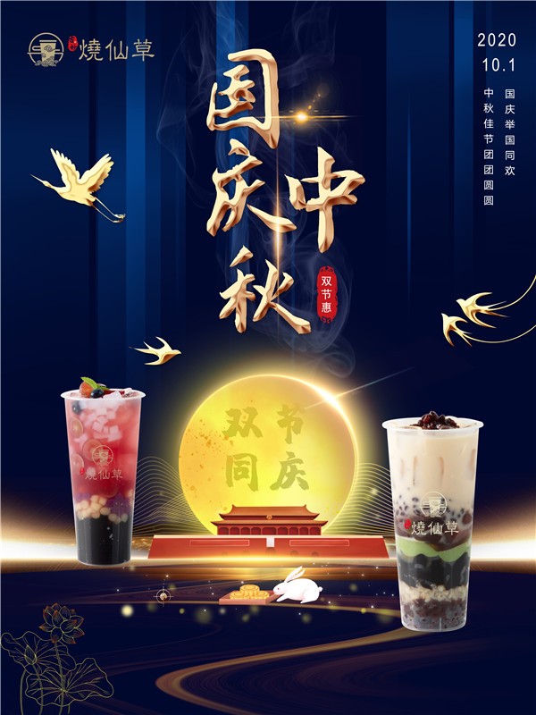 中秋国庆双节在即,家欢聚,国欢庆。在中国这样的传统节日里,又是双节重遇的日子里。你真的过两个节只用月饼来陪伴吗?如果可以再来一杯浓蜜鲜甜的古妙烧仙草奶茶,我想会更加完美吧!