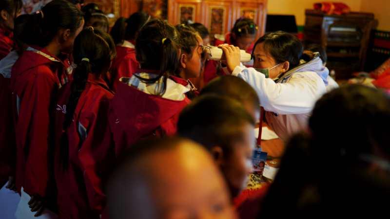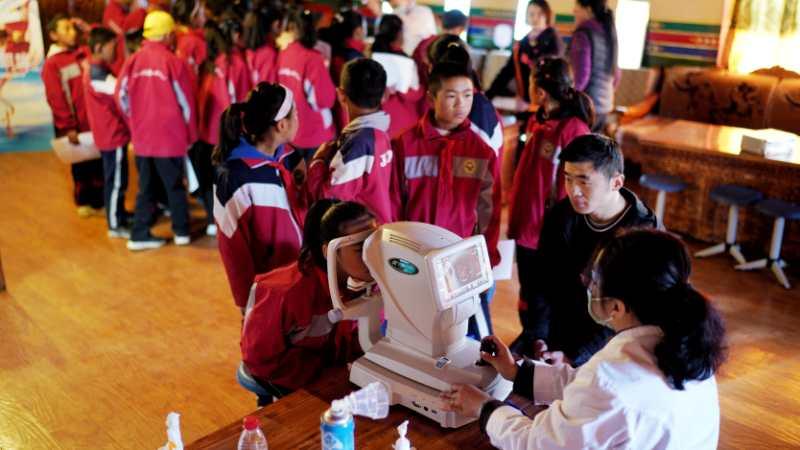 这是一场跨越4300公里的援藏光明行动:一组来自全国各地的眼科医生、验光师组成的“点亮明眸”医疗队,从平原地区来到海拔4000多米的雪域高原,共为西藏江孜2822名中小学生进行了眼健康检查,将为其免费配镜2140副,眼病资助登记49人……据“点亮明眸”医疗队成员介绍,因为普遍缺乏眼健康保健意识,许多同学都热衷玩手机“吃鸡”游戏刷抖音,西藏江孜县学生的眼健康状况不容乐观。