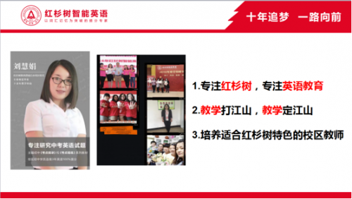 从一名语文老师到一名专业的英语老师,从英语老师到一个校区的校长!百分之百的提分率铸就了红杉树在当地的良好口碑。看刘慧娟校长是如何用热爱教育和专注教学铸造红杉树好口碑的。