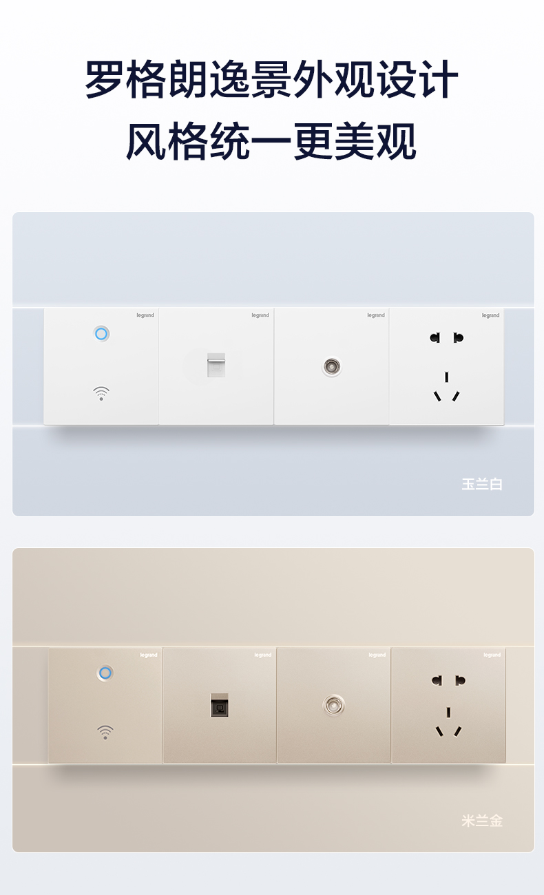 外观设计上,WiFi面板与罗格朗逸景系列开关插座保持统一,并可直接替换原有网络面板,无需重新布线,不破坏原有装修。