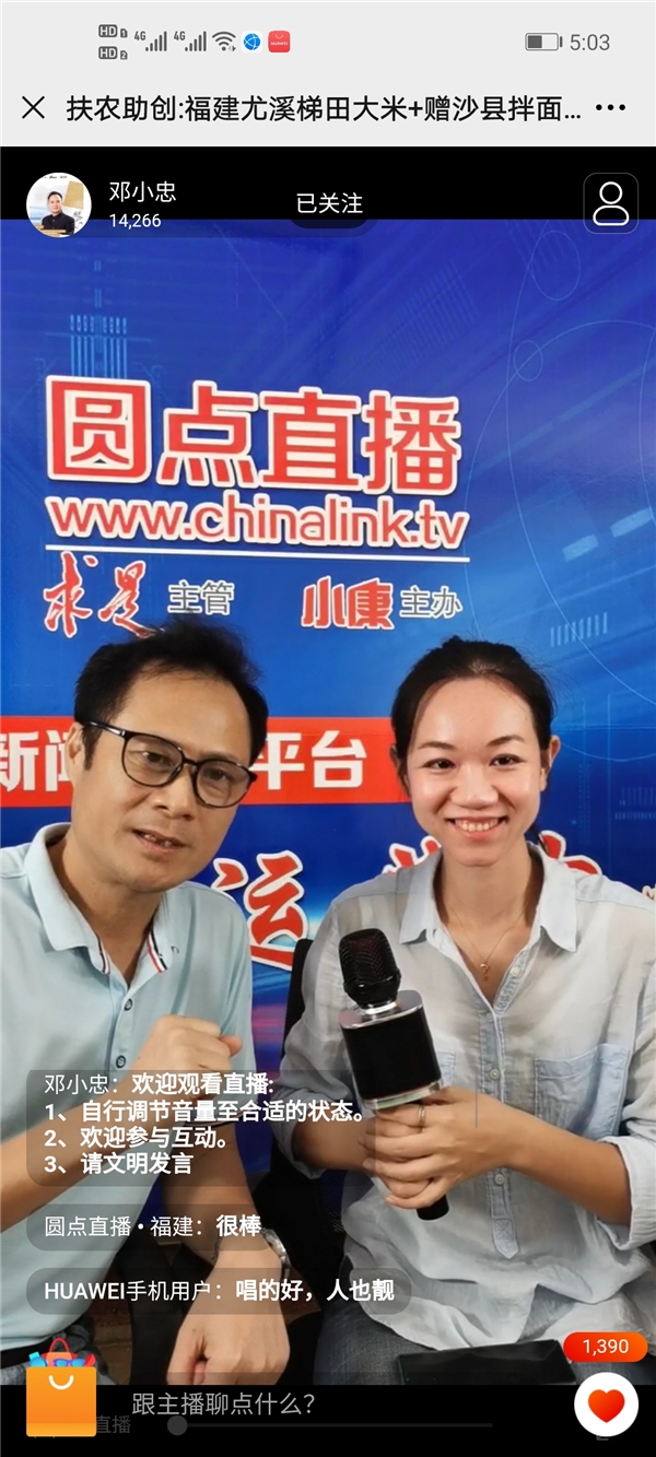 2020年10月11-12日,邓小忠老师和华厦学院大学生双创团队首次亮相党政平台“求是”旗下的“圆点直播”福建圆点直播平台进行直播,邓小忠老师介绍了尤溪和尤溪联合梯田大米,在预告片用世界语说尤溪农谚,第一次直播没带购买链接,没商业味道,纯公益直播,得到网友和厦门企业家的支持和点赞。