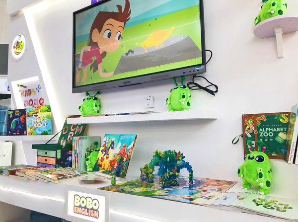 在科学测评的基础上,KIDS+进一步将核心素养提升全面融入课程体系,建立了涵盖英语、语文、思维、科学、艺术等多维度、多品类的儿童启蒙课程学习平台,为每个不同天赋、个性的孩子提供可“定制”的培养体系。如在本次展会亮相的KIDS+首个在线AI启蒙课程产品BOBO英语,就是以“儿童核心素养能力模型”为基础,专为2至8岁儿童英语启蒙打造的在线AI互动课程。课程采用卡通IP陪伴式教学,动画游戏相结合,通过完整的故事和生活化的场景让孩子“沉浸式”学习,全面提升学习兴趣、专注力,塑造良好品格。