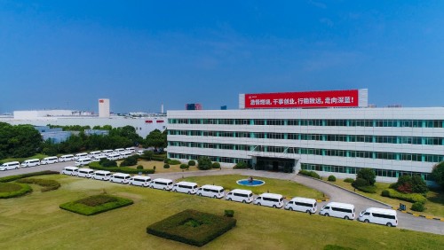 近日,在苏州金龙厂区内,两排纯白色的苏州金龙轻型客车整齐停放、蓄势待发,天空上方航拍无人机嗡嗡作响,记录下了这一时刻。