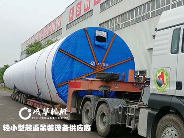 即使将风力发电机拆卸运输,有部分配件体积还是很大,在运输作业时固定起来比较费力,一般多采用手扳葫芦加吊装带的组合方式进行固定,将吊装带摆放至合适位置,然后通过手扳葫芦将吊装带和固定点链接,通过操作手扳葫芦手柄收紧链条,将配件安全稳固地固定在运输车辆上。