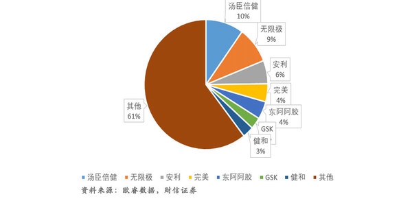 行业集中度待提高。根据权威机构欧瑞数据的统计,2019年汤臣倍健市场份额排名第一,第2名是无限极,第3名是安利,第4名是完美,但集中度并不高,前五名合计市场份额不到35%。