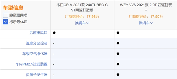 WEY VV6对比本田CR-V!老司机:安全保护是取胜关键