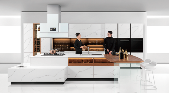 烤漆板材的优点有很多,颜色鲜艳且可以造就多种搭配方式,在日常生活使用中也易于清洁和打理。烤漆板表面要经过六至九次打磨,打磨次数越多对工艺要求也越高,成本相应的也会变高。目前国内烤漆工艺大部分还停留在传统色调之中,柏厨家居已经在工艺创新上不断探索,发挥大国工匠精神,将传统艺术与现代技术完美结合,有了礼白独特的纯手工大理石纹烤漆工艺的呈现。每一笔线条都呈现出手作的匠心,与众不同,难以复制。这种追求自然之感的简素生活美学,将礼白打造成为了一个满载安宁与幸福的栖息地,在这里没有孤独,只有阖家团圆的幸福喜乐,在这里也没有处世的烦恼,只有烟火生活的平淡和知足。