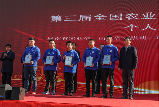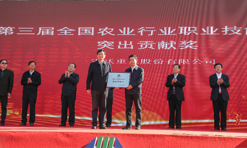 第三届全国农业行业职业技能大赛与会领导为雷沃重工颁发突出贡献奖