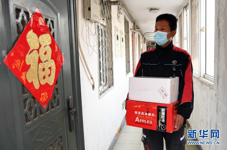 11月11日,快递员杨敬山在海淀区希格玛社区内配送快递(新华社记者任超 摄)