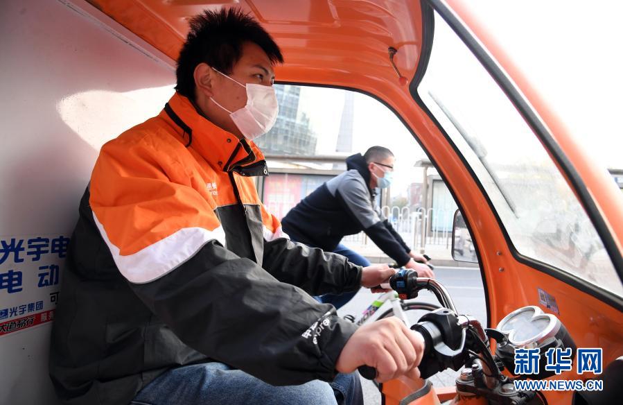 11月11日,快递员董鹏飞在海淀区中关村南大街驾车配送快递(新华社记者任超 摄)