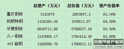 5家上市钢企负债率超80%,重庆钢铁则高达92%