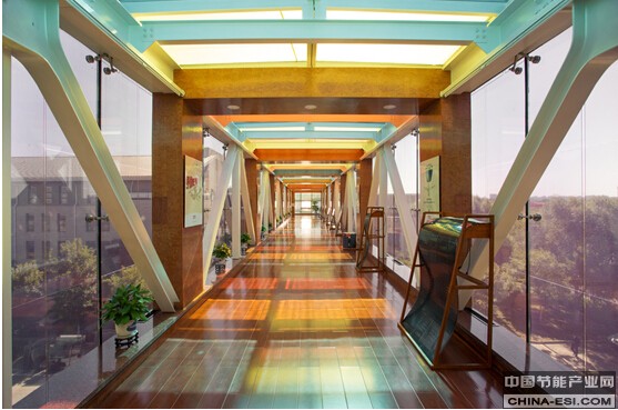汉能BIPV项目中,连廊采光顶采用彩色薄膜发电组件
