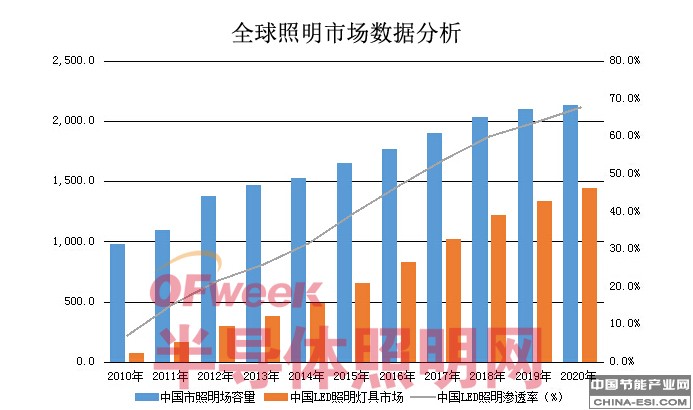 虽然目前LED照明市场的情形不容乐观,但据OFweek行业研究中心预测,2015年中国LED通用照明市场需求预计将达100亿美金,而到2020年将达220亿美金,足见未来的照明市场还将会继续增长。