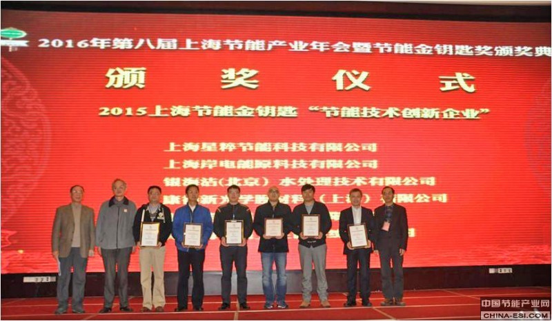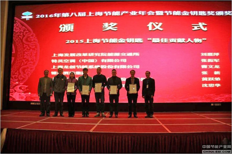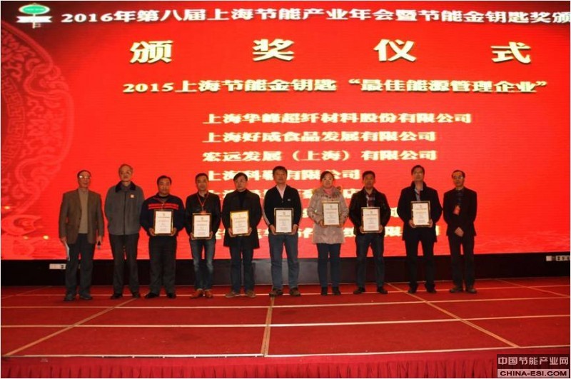 为表彰对节能产业做出卓越成绩的企业、个人及机构,由上海应用技术大学副校长陈东辉和上海市节能工程技术协会会长曹伟武为获得2015年度上海节能金钥匙奖的企业和个人颁发包含“最佳贡献人物”、“节能技术创新企业”、“最佳能源管理企业”、“最佳‘互联网+’企业”、“最佳客户服务企业”等奖项证书,同时上海市节能工程技术协会秘书长陈宏为首批获得上海市节能工程技术等级甲级资质的企业颁发证书。