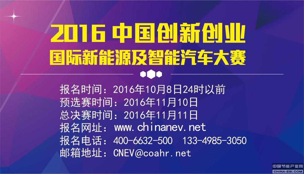 新能源业界大咖评审,技术推广企业对接,百亿创业基金支持,2016《中国创新创业新能源及智能汽车大赛》招募报名正式开始(报名入口:www.chinanev.net中国新能源汽车网官方网站),参赛者只需带上您的新能源汽车相关项目或技术参赛,就有机会赢取百万奖金,并让您的项目或技术在应用平台展示,同时我们帮助您对接市场资源,对接政策、对接资本、对接创业伙伴,促进技术项目与整车厂、零部件企业等的深入对接与合作。