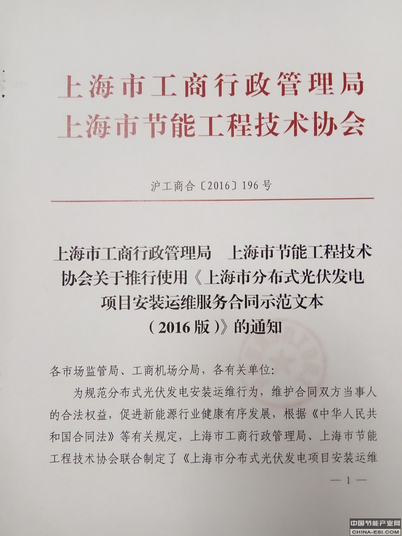 关于推行《上海市分布式光伏发电项目安装运维服务 合同示范文本》的通知