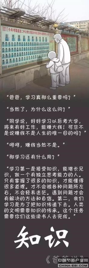“爸爸,学习真的那么重要吗?” “当然了,为什么这么问?” “同学说,好好学习以后考大学,将来有好工作,能赚大钱!可您不是说赚钱不是人生的唯一目的吗?” “呵呵,赚钱当然不是。” “那学习还有什么用?” “学习第一是接受知识,能增长见识,做一个有独立思考能力的人。只有掌握了很多的知识,才能懂得很多道理。才不会被各种问题所左右,不会轻易迷茫。遇到问题才会有解决的方法和自信。第二,我们学习是为了把知识传递下去。人类的文明需要知识的传承。这个任务需要你们这些读书人去完成。”——知识